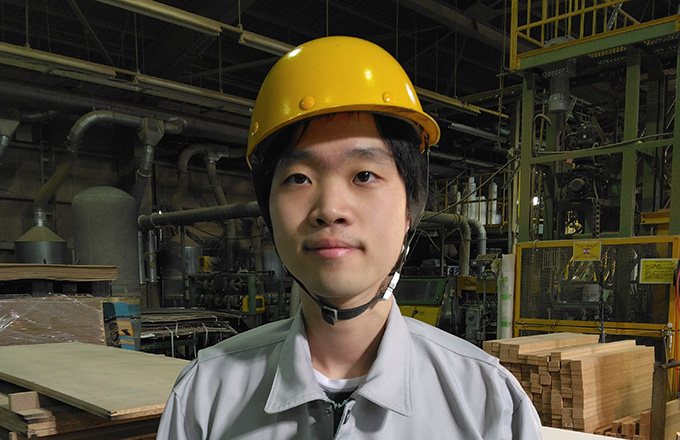 製造職として機械のオペレーターの仕事をしています。具体的にはパーティクルボードの原材料である木質チップを乾燥、切削等をする仕事を担当しています。